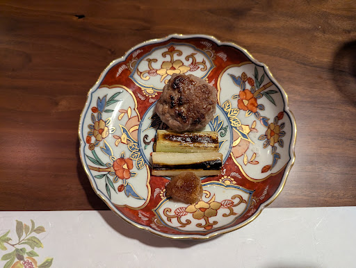 この日は開店13周年コースをいただきました。 小鉢は河内鴨の皮ポン酢で始まり、八寸にはロース煮、天然稚鮎の炭火焼き、北海道トマトのマリネ。 椀物は冬瓜翡翠煮ととうもろこし摺流しのお椀。出汁の優しい味わいに癒されました。 向付は須磨鰹とメイチダイのお造りを醤油とポン酢で食べ比べ。 焼物は河内鴨のつくねと白葱で、鴨の脂をまとった葱が絶品でした。 強肴はうざく。府中の卸から生きた状態で仕入れた国産うなぎを、この店で蒲焼にして仕立てている贅沢な一皿。 食事は稲庭うどん、甘味は白餡に実山椒を合わせた自家製最中で、優しい甘さにピリッとした山椒の風味と実の食感が面白く、最後まで楽しませてくれました。 追加で頼んだ鮎うるかも日本酒に最高の相性。 旬を目一杯楽しませていただきました。