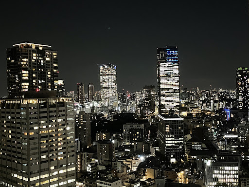 山王パークタワーの入り口が少し分かりにくいが、メインの建物の中央部分にエレベーターホールがあり、6基もの驚くほど巨大なエレベーターが、これも驚くことに27階直通なので、あっという間に着く。 27階からの赤坂方面の景色は、夜景だとさらに綺麗に違いない。