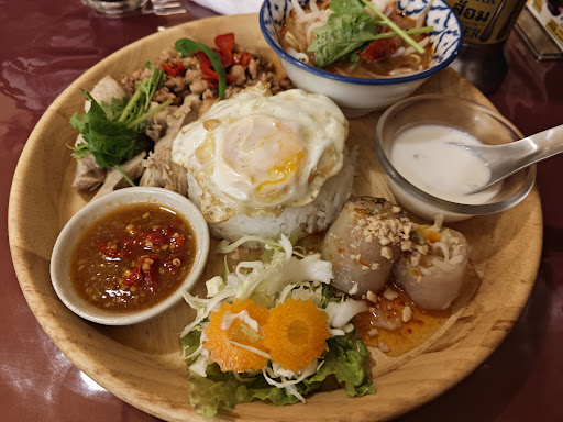 After ordering and waiting for a while, the long-anticipated dish was served. On that single plate, Thai specialties congregated. Opening my mouth, I was hit by the spicy Tom Yum Kung, the rich aroma of Gapao Rice tickling my nostrils, the freshness of the spring rolls pervading my mouth. Then, the gentleness of the chicken rice satisfied my stomach, and the dessert tapioca further heightened that sense of satisfaction.