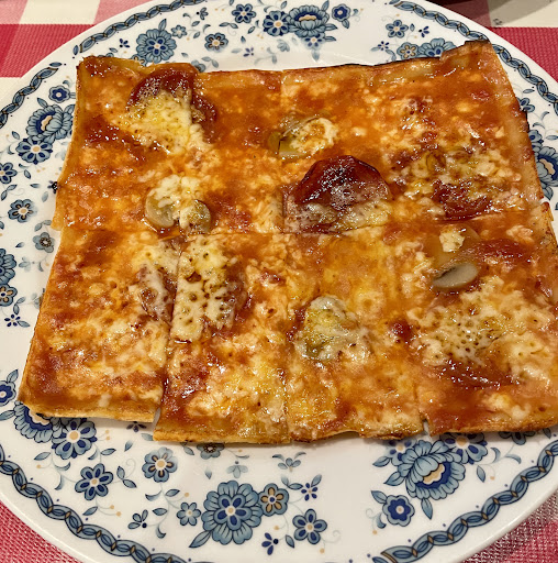 Read more2025.02.06 平日 12時前に訪問しました。ミルメゾン2階(ドコモショップ西葛西店隣り)ランチサービスを目的に 入店すると人数を確認後 席を案内してくれます。先客4名 後客4名程。店内は 喫茶店のような雰囲気に赤と白ギンガムチェックのテーブルクロスがかかったテーブル席。テーブル席は 約10卓。ランチサービスは 月・木・金曜日(11:30~14:30(L.O14:00))のみ。土日祝のランチサービスは行っておりません。『タクシー運転手さん一番うまい店に連れてって!』に放送されたお店です。ランチサービスにはミニサラダが付きます。ランチドリンクは360円。ランチメニューは ピザ・ピラフ・スパゲッティ・ラザーニャがあり 私はナポリタン(1150円)大盛り(+220円) 相方さんは スタッフさんにおすすめを聞いて サラミ&マッシュルームが入った ピザ(ミックス)(1080円)をオーダー。スタッフさんから 男性の方だと ピザだけだと足りないかも知れないので スパゲッティをシェアすると良いかも知れませんとアドバイスをいただき 私のナポリタンを大盛りにしました。ランチサービスのミニサラダは レタス・きゅうり・トマトにイタリアンドレッシングがたっぷりかかっており かなりの酸味を感じたので ドレッシング少なめが良かったかなって感じでした。丁寧に作られた ピザが先に運ばれて来ました。ピザは四角い形で 薄い生地はパリサク食感で美味しい!出来たてアツアツなので とろけたチーズにやけど注意です。軽い食感なので確かに これだけでは男性には足りない感じで ディナーに お酒と共にいただきたい1品ですね。ナポリタンの具はタマネギ・ピーマン・エビ・マッシュルームが入っており ほど良い細さのパスタに 洋風だけど 和風のような酸味を飛ばした香ばしいトマトソースが良く絡んでおり ナポリタン とても美味しかったです!粉チーズは手作りのようで 優しいお味なので ナポリタンにかけても 主張し過ぎません。ランチサービスの ピラフやスパゲッティのバジリコ・ラザーニャも食してみたいです。お支払いは現金のみです。