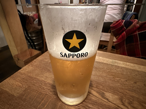 Nice izakaya with some Spanish dishes. I tried their 小エビのアヒージョ (small shrimp ajillo), a cacerole of shrimp in garlic, chili pepper and olive oil sauce. They’re served hot and they’re delicious. I also tried their 生ハム (raw ham), Spanish jamón with a fine cut and great taste, better than other Spanish restaurants I went to. I also had cherry tomatoes in peach sauce (sweet and tasty) and fries (well spiced). I had a beer and a 生グレープフルーツサワー (grapefruit sour) and it was ¥4,940 in total (for two people). The place has a cozy atmosphere....