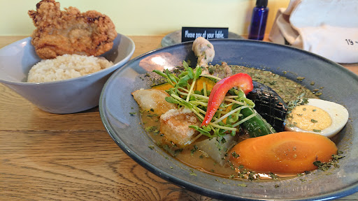 Read more人気店で客席18程度とキャパが小さいこともあり、開店直後10時から11時なら比較的すいてるものの、運次第ですが入店待ちは覚悟しないとです(今回タイミング悪く40分待ち)。専用駐車場は1台分ですしちょっとわかりにくかったりで、待ち時間利用してサンドラッグやCO-OPで買い物というのが良いかも(呼びこみ時にグループ全員そろってないといけないので注意)。待ち順位1番は店内の待機スペースに案内され、そこで注文しておけば食卓に着いた時にはすぐ料理が運ばれる感じ。他の方のコメントや写真デモわかりますが、野菜ゴロゴロカレーにチキンや牡蠣が加わった3-4種類。値上げしたのか2022年9月時点でドリンク付きで税込み1800円程度。骨付きチキンが人気なだけに定番感ありますがザンギ(スープの中でなくライスの上に置いての提供)もなかなか宜しい(チキン好きならトッピングにして追加しても)。カレースープはサラサラで野菜の旨味はあるので優しい味ですが、蛋白質系の深みが欲しい人はザンギもスープに入れてみましょう。入店まで待つことはあれど入店後のサーブは非常にスム...