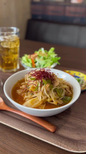 Read more土曜日の12時半に行く。先客2組。テーブル席2卓、カウンター5席。 ・スープセット(チキンのスープカレー)1200円 ・スープセット(キムチチゲ)1200円 スープ、ライスorパン、サラダ、小鉢、ドリンク。 ライスにしたら大盛りにしてくれた。ドリンクは選べる。アイスコーヒーにした。 水はセルフ。 注文から8分後に料理が提供される。 スープカレーはぬるい。骨付きチキンはやわらかい。野菜はジャガイモ、カブなどが別添え。ご飯は五穀米。 小鉢はヒジキ。 ドリンクはアイスコーヒーにした。 キムチチゲは野菜たっぷり。...
