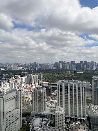Love that some of the tables overlook the lush greenery of nearby gardens as well as the Tokyo Skytree in distance.