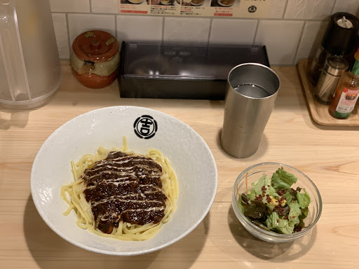 I was wandering around Harmonica Yococko in Kichijoji when I stumbled into this little shop with a girl in the window making hand made pasta. Despite it was a Thursday morning around 11:30 it was full of people so I decided to try it. They only serve linguine with 7/8 different types of sauce . They have a meat sauce (Bolognese), a sauce with aubergine (similar to Norma sauce from what I could see), Carbonara and a white sauce made with cod roe, sea urchins and squid. Differently from what I read in some previous review the place now have an English menu! I had the fish pasta that came topped with little stripes of Japanese Nori seaweed and lemon to squeeze on top. First of all it was perfectly cooked “al dente”, the sauce was creamy, silky and very delicate with a slight spicy kick at the end. I’m Italian and I grew up eating pasta but this was unbelievably good, I was shocked!! Every pasta dish comes with a side portion of salad. What a nice little gem this place is, please give it a go if you are in the area. I hope you find this review helpful and if you go to Spakichi please tag me in your Instagram posts or stories...