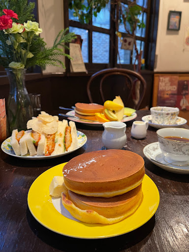 プリンとフルーツホットケーキとセットでブレンドを注文。 ミルクは可否を聞いてくれます。 注文が入ってから焼いてくれるホットケーキは ふかふかで2センチ超えの厚さが2枚。 とってもボリュームがあり、自家製の蜜もたっぷりつけてくれるので好きなだけかける! 表面がさっくり中ふかふかでとても好みのホットケーキでした。 プリンもつるっとしておいしい。 添えてある生クリームと一緒に食べるともっとおいしいです。 フルーツは7種類も乗ってるし 本当にドリンク込みで全部で1040円でいいの……? という気持ちになってしまった。 お昼兼おやつになるボリューム感。 ご馳走さまでした。 次はナポリタンとク...