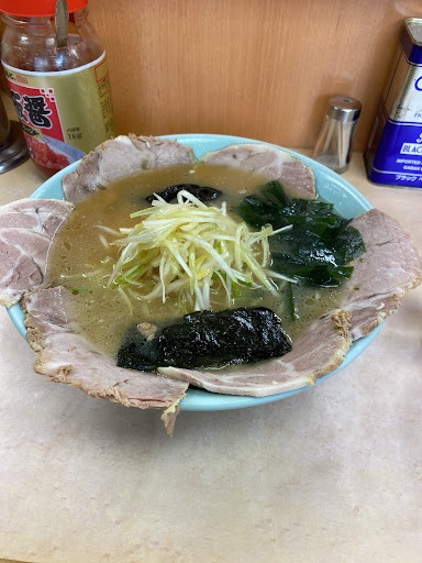 ①ほぼ、ラーメンショップ系の『屋台 とんとんラーメン』で、実食。 近くに、駐車場があるが、満車を避ける為、朝イチに、来店。 15分前で、1台駐車してあったが、店頭に並んでいなかったので、1番手で並ぶ。🤔 開店前、5人の並びでした。😅👀👍 1000円を意識し、「ネギラーメン中」か「ラーメン大」の2択で、ネギより、満腹を優先し、「ラーメン大」実食。😄👍 着丼し、見た目は、ラーメンショップそのものである。🤔👀😄🧐