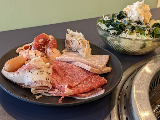 Low-key, popular spot for all-you-can-eat grilled meat & sushi in a pared-down, diner-style setting.