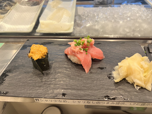 Read moreWant to know how good it is? We literally came here 3 days in a row. The fish is fresh and extremely tasty. The chefs are also very nice even though we were foreigners. The food is also extremely reasonably priced. My favorites include the crab innards, negi Toro (2 prices for 216 Yen what a steal), and the unagi. If you get the shrimp and a miso soup they will offer you the option to put the shrimp head inside the soup. I would recommend this option as that miso soup is probably the best I've ever had. All in all, this pretty much beats any sushi restaurant I've ever had barring omakase. This restaurant is also a chain so it is very accessible if you're traveling...