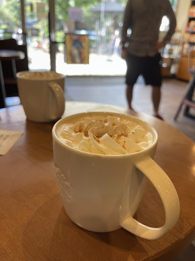 I always enjoy visiting this branch because it is in my neighborhood and there is outdoor seating. It can be quite hard to get a table outside in the shade as many people visit with their dogs and must sit outside. Of course, fall is my favorite time to visit because I love pumpkin spice lattes so much. I get mine with oat milk, which I think actually...