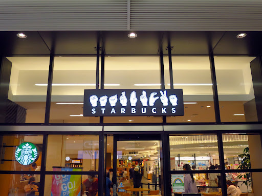 Read moreスタッフのほとんどが聴覚に障害を持つ方で、手話で接客をするスターバックスです(聴覚に障害を持たないスタッフもいますが、必ずレジ等に常駐しているわけではありません)。だからと言って手話が出来ないと注文が出来ないわけではなく、指差しで注文することが出来ます。そのため、多くのスターバックスでの接客とほとんど変わらない接客サービスを受けることが出来ます。何も知らない状態で初めて利用すると少し戸惑う可能性もありますが、利用回数を重ねれば自然と慣れてくると思います。クリームの量や氷抜きなどの細かい指定が必要な場合も程度によっては対応可能ですし、場合によっては聴覚に障害の無いスタッフの助けがあるので安心です。 国立駅に直結するショッピングモール『nonowa国立』の1階にあり、屋内ではありますが店内と店外を仕切る衝立のようなものはありません。カウンター席に充電用の電源コンセントが設置されています。店内はやや幅広の柱がいくつかあるため、店内の様子が少し分かりづらいのが難点です。