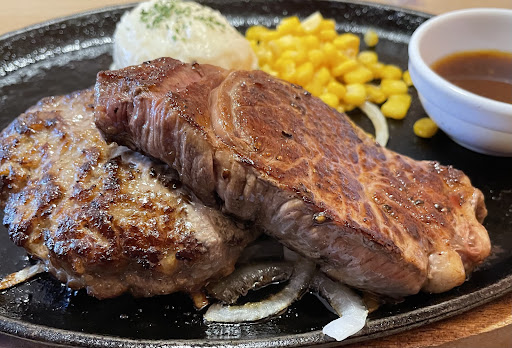 平日の12時半に行く。先客3組。テーブル席が7卓ほどでさほど広くない。 ・松木ハンバーグと松木ステーキ2749円 焼き方はミディアムレア、ソースは松木和風ソースとした。 まずスープとサラダが提供される。 スープはぬるい。サラダはレタスのみ。 注文から30分後に料理が提供される。ランチなのに遅すぎ。 料理は美味しい。特にハンバーグは熱くてジューシーで良かった。 松木ステーキはリブ。ミディアムレアにしたがレアでもいいかもしれない。 ライス、スープのおかわり自由とのことだが店員が伺いに来ることはない。 水を注ぎに来ない。 客席が寒い。 支払はPayPayが使える。 店名は所在地に由来するかと思ったら「ステーキハウス松木」の「松木店」だった。 駐車場完備。(2023年1月4日)
