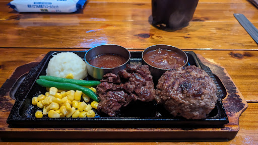 Read more八丈島にあるとても良いステーキ屋さんです。 島の旅行では魚系の料理が多く、そろそろ肉をガッツリ食べたいなと思っている方には非常におすすめです。そうでない方にも普通におすすめです。 ハンバーグ200gとチャーリーステーキ100gのセットで2200円程度で、肉肉しいハラミステーキとハンバーグを十分な量で楽しめます。 チャーリーサラダ、ホタテのアヒージョもそれぞれとてもおいしく、野菜と魚介のバランスもとってくれます。 締めのガーリックライスはボリュームたっぷりで味も良く、満腹感を与えてくれます。 なにより、ワインのボトルを頼んだ際に、メニュー表にはなかった同価格帯のおすすめワインを提示してくれる店員のお兄さんのサービス精神が素晴らしいです。カリフォルニアワインおいしかったです。 次に八丈島に来ることがあればまた来たいと思えるお店でした。 2人で画像のメニューを頼み8500円程度でし...