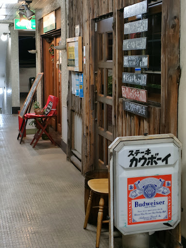 寡黙な職人のような店主が1人で切り盛りされているようです。 飲み屋などの飲食店が多数入っている駅前のビルの階段を登るとお店はあります。 店内は薄暗く、お世辞にも綺麗とは言えませんが、BGMにはカントリーミュージックが流れ、まるで西部劇でよく見るバーに迷い込んでいるかのようです。 席数はボックスタイプで20〜25席ほどかな?