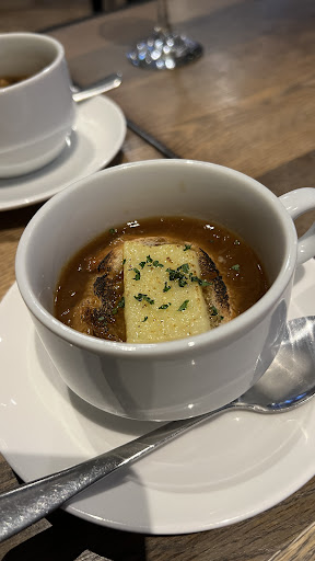 この季節に食べたくなりますよね。 小ぶりなスープカップでちょうど良いサイズ感。 熱々のオニオンの甘さが身に染みる美味しさ!
