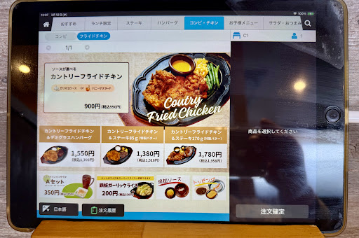 【カントリーフライドチキン&ステーキ85g(特製バター)】1,518円(内税) メニューを見たらフライドチキンが美味しそうだったので注文してみた。 ステーキ85gとのコンビプレートにする。 チキンがデカイので揚げるのに少し時間がかかる。 「ガリマヨソース」を選択、「ハニーマスタード」もある。 皮がパリパリ 味はふつう デカイので満腹にはなる。