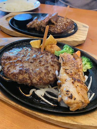 お気に入りのステーキ屋さんが月曜日お休みなので、先週に引き続き行ったことのないステーキ屋さんに挑戦。別の場所の「どん」には行ったことがあるけど、こちらは初めて。先週行ったステーキ屋さんも美味しかったけど、ウチはウエルダンが好きなのだけど、そう注文するのを忘れて普通の(ミディアムかミディアムレアぐらい?)で頂いた。美味しかったけど、もうちょっと焼かれているのが好き。ということで、こちらでははじめから「ウエルダン」で、と注文。ハンバーグとのコンビを頼んだけど、ハンバーグもウエルダンにできるんだって!ステーキとハンバーグについては、給仕されてから焼石みたいので自分で焼くやつが面倒で嫌いなので、はじめからよく焼いてもらって出していただく。お店の人から確認してもらって、良かった。で、出てきたものは期待通りで、リーンで美味しかった!味付けもシンプルな塩コショウだけなので、お店が一緒に持ってきてくれたオニオンソースと和風醤油ソースでいただく。美味しかったけど、はっ!!として、追加でデミグラスソースだけを注文。「きっとすげーうまいぞ」とおもってやってみたけど、思ったほどではなく、お店提案のオニオンソースと和風醤油ソースのほうが断然うまかった。