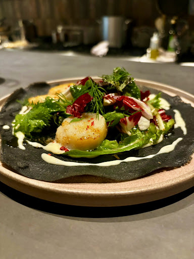 アラカルトをオーダー ▪️お通し おしゃれに盛り付けられたクレープ生地を使ったのとか3個とも美味しかったです! ▪️前菜盛り合わせ いろんな種類が楽しめるから これはマストオーダー ▪️本マグロのカルパッチョ 出てきてびっくり‼️ 厚切りの本マグロ!! めちゃ贅沢〜 お肉かと思ったくらいデカかった〜 これは食べるべき逸品❣️ ▪️白子とカラスミの痛風パスタ(イカスミパスタ) 濃厚でプルプルの白子に真っ黒のイカスミパスタに塩辛いカラスミのオレンジ🧡色合いも素敵だけどこの組み合わせも美味しかったなぁ〜😋 ▪️鴨のローストベリーソース 牛肉が売り切れてて鴨肉をオーダー 甘酸っぱくてほろ苦いベリーソースがベストマッチだった☺️ ★デザート ▪️塩チョコテリーヌ 濃厚でねっとりして美味しい😋岩塩がいい仕事してました🩷
