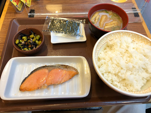 すき家の牛丼は安いがまあそこそこの味だけどこの朝食の焼き鮭定食は安い割に旨いからよく食べに行ってるな。 最近リニューアルしてポテトサラダと浅漬けから味付け海苔とひじきの煮物になって浅漬け結構美味かったからガッカリだけど海苔付くようになったのは良いな。 煮物はかなり甘口だから俺には残念ながらご飯のおかずには合わないな。