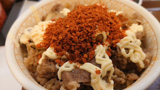 Read more☆3つから☆1つ以下に格下げ。 大好きなニンニクの芽牛丼注文したら… 10cm弱のバリバリ硬い米の塊が入っててイラついた。 店員呼んだが謝罪なし。 『交換します』の一言。 最後の支払い時も謝罪なし。 店員『ポイントは?』 自分『無いです。auPAYで…』 店員『かしこまりました』ピッ… 店員『お支払い方法は?』 はっ!?いま決済してねえの? この店、大丈夫?? 他の店舗もこんな感じ? ガッカリで残念な店...