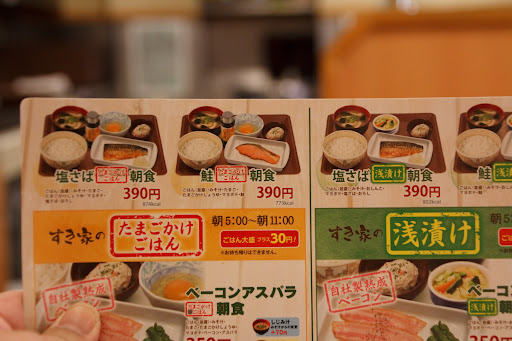 早めにきたんだけど、朝飯を食べていないので試験に差し支えるかも。 ということで、駅前でめについた、ここ、すき家に入った。