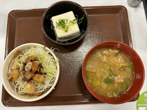 Read more日曜日の朝に行きました。 隣りのコンビニで朝食を買うつもりだったけど、卵朝食セット290円という旗にひかれて、入ってしまいました。 店内すいていて、タッチパネルで朝食セットを注文したところ、お茶をすぐに出してくれ、2分くらいで食事の提供もありました。 若い店員さんの感じもすごく良かったし、お店きれいで、トイレもきれいだったし、また来たいと思いました。 他の方の店員さんのクチコミを見て覚悟してたけど、時間帯なのか?朝の店員さんは良かったです。 朝食セット、安いし、家で作るよりいいや。