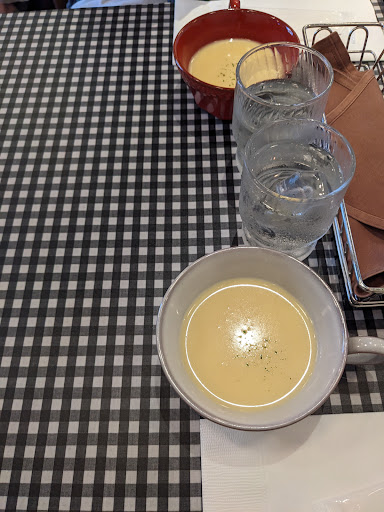 Really cute interior and atmosphere, like a cozy little hide away spot from the bustling streets of Shibuya. I came across this place while trying to search for a restaurant for no line and reading the other reviews, it seems this is no common occurrence. I ordered the restaurant’s main specialty and a cream soda. I really enjoyed the onion soup, it was on the sweeter side which is what I prefer, and also the cream soda was one of the best I’ve had. The hamburg was large so it was hard for me to finish alone, also because the taste was savory just all throughout. The patty itself was savory and then loaded with cheese inside and on top which was a lot for me. I liked eating there though, the atmosphere with the Christmas decorations...