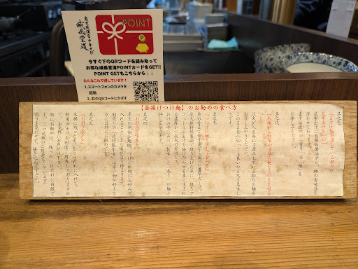 Ramen shop specializing in savory seafood broth tsukemen as their signature dish. You can choose from several types of fish broth including oyster broth. We went with the hot served tsukemen which comes in a wooden barrel containing kelp dashi. The dipping broth is very rich and packed with umami. The pork slices are roasted and extremely tender and delicious as well. Ended up ordering a bowl of rice at the end to enjoy with the remaining broth after I finished the noodles. A must try for ramen and seafood...