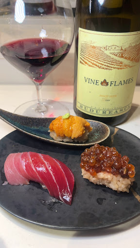 🍷ヴァイン・イン・フレイム(赤ワイン) ■中とろ ■いくら海苔佃煮 ■生うに