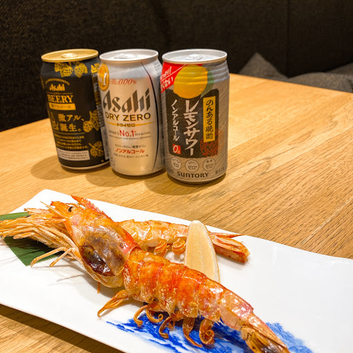 ▪️特大海老塩焼き 海老が食べたくて。大きい海老を、カリカリに焼いてくれます。塩が絶妙な味わいで、ノンアルにも合いますね。