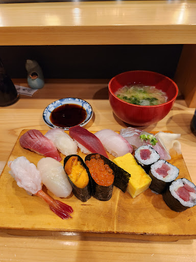Read moreTucked inside the same complex as where the famous tuna auction happens is an alley of sushiyas all serving sushi platters to cater to visitors. Needless to say, their clientele is mostly made up of visitors to the fish market & auction, i.e., foreigners. Despite being located next to the fish market, I felt like the sushi platter (3800 yen) was a little underwhelming. Although the spread seemed decent and pretty bang-for-buck upon first look, the quality of the individual seafood, i.e., uni, tuna (ikr), and eel, was subpar. The rice lacked temperature control. This makes me wonder if my first point on their clientele being foreigners has made them compromise on quality. But of course, one cannot expect fine-dining standard here, since afterall it is meant as a quick and easy sushi lunch. Also, prices here are rather affordable compared to what you can get elsewhere-an important consideration when choosing...