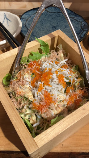 zakaya with great seafood. There are box seats and a counter, and it can be used as a banquet as well. Credit cards accepted.