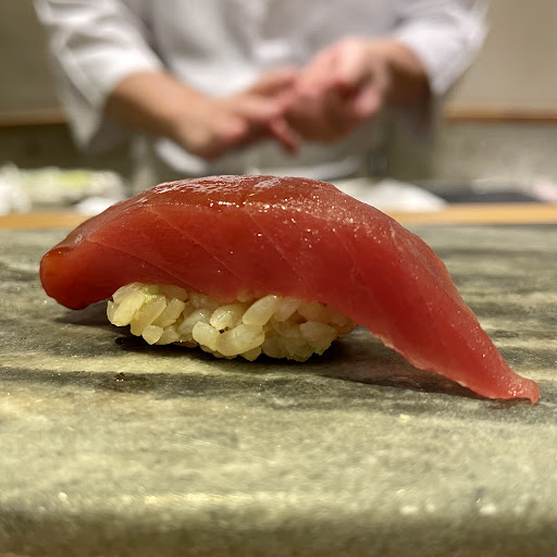 「本鮪中トロ」は口に入れた瞬間から溶けていく・・・赤酢のシャリの酸味や甘みもバランスが良く口ほどけも素晴らしい。
