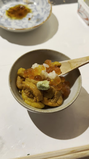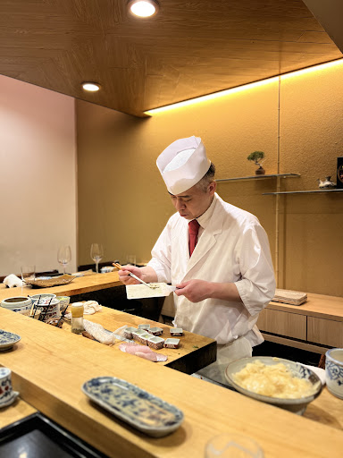 Read moreThis was the most serene, ethereal dining experience I’ve ever had the opportunity to partake in. Only downside is limited seating, when more people need to go here. First of all, the sushi had such immaculate texture and flavor. Unlike other places where you just order and eat, it’s each bite is catered with sauces, or salt in addition. The waitress was immensely kind and helpful, directing you how to eat each fish, what you should eat it with, and so on. She is very accommodating, wiping your white paper mat, clearing your area, and taking saucers. When directed to the bathroom, its cleanliness was refreshing, it was a sanctuary of relief. Moving onto the chef, he is the most humble man alive. Although some reviews mentioned him as grumpy, if you look past someone’s facial expressions, you can actually tell who they really are. And this man was so, so nice. The delicate slicing of the fish, the mastered movements of during frying and searing. When I went to the bathroom, he waited for me to come back to prepare my shrimp nigiri. And when all was said and done, they walked us out the door, and onto the street again thanking us. I’ve never felt so at home at a restaurant. If you can’t speak Japanese, please, please, use Google Translate to thank the chef for all his efforts. Please consider my comments, and...