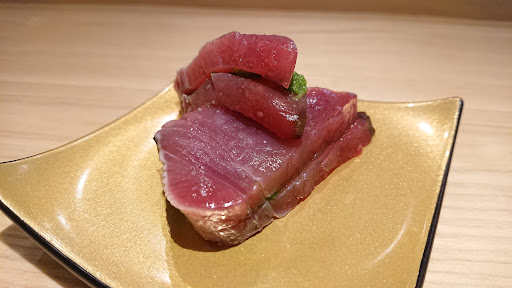 2品目 酢洗いしたスズキ 雑味なくススギの旨味がダイレクトにきます。 中には芽ネギ🌱 3品目 とこぶしの旨煮 上品な優しさ 4品目 真蛸の桜煮🌸 ねっとりまとわり付く旨味 5品目 松茸とハモのお碗 今までのあっさりを、覆す強い香り💪すだちで、香りの変化が楽しい 6品目 クリームチーズ もろみ味噌漬け 7品目 真魚鰹の西京焼き 一口サイズが嬉しい😆技を感じる✨ 8品目 毛蟹のお寿司🦀 9品目 めいちだいの昆布締め 10品目 アジ 自家製の青薬が引き立ててくれます 11品目 エボダイの昆布締め 12品目 縞鯵の漬け 13品目 金目鯛 14品目 宮城県産まぐろの赤身の漬け 15品目 トロ 16品目 車海老 17品目 雲丹 18品目 あなご 19品目 絶品カステラ風卵焼き✨ 20品目 毛蟹のお味噌汁