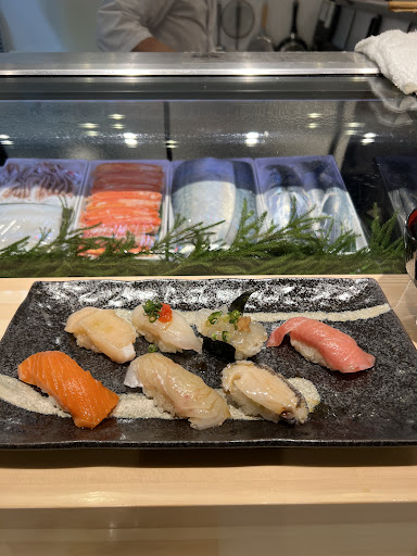 This was quite the treat after a long 7 hour flight from Bangkok, another 2 hours in customs, and then 2 hours figuring out how to get from the airport to the hotel. When you first walk in you are immediately greeted by the head chef and his staff. I sat at the counter as I wanted to watch this master of 40+ years cook. I asked for permission to take pictures of him and his artwork and he graciously accepted. I went with the 10 piece nigiri 🍣 set, omakase style, letting the chef make all the decisions on the pieces of meat he would use. He did not disappoint. From the artful sake pour in a 2 cup mechanism creating a perfect zen balance of water dripping into the cup, to the first appetizer of tiny squids in a flavor sauce, to the 10 piece nigiri set which included a slice of wagyu, uni, roe, and many of the classics, the meal narrated a beautiful story. The fish was perfectly seasoned and I didnt even think about pouring additional soy sauce on it. The artful craft of each slice, color, and flame used to achieve the final dish was exquisite. Truly a hidden gem that only seats...