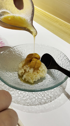 1.良かった点 ■料理 ◇ご飯 ・お寿司のご飯温かい ・中トロはやわらかく、溶ける食感だった。中トロ以外もお寿司は全体的に柔らかかった ・前菜盛り合わせのウニとエビは、ウニが苦手の自分でも美味しくエビの甘さとウニが融合した ・前菜盛り合わせのよもぎふも外がサクッと中もちっとして美味しかった ・前菜盛り合わせの玉ねぎが絶妙の甘さと辛さだった ・スミイカが絞ったカボスと炭塩でさっぱり美味しかった ・燻製ウニがとてもよかった。燻製することでウニのうまみが凝縮し、また、苦味も程よく感じた。 ・燻製ウニの蓋を開けるパフォーマンスが映えてよかった。インスタを使う若者ウケがいいし、しばらく燻製のいい香りが広がりいい体験だった ・雲丹といくらソースのコンビネーションがよかった ・ほうじ茶アイス、濃厚で甘すぎず美味しかった。一緒に出してもらった日本茶とのコンビネーションも○ ・のどぐろと雲丹ご飯の相性が良かった。のどぐろのカリッとした部分と雲丹ご飯のとろっとした部分が融合していた ・ランチタイムにディナーコースを出して貰えたのがよかった。私達のようにディナーで炭水化物を抜きたい人はランチで贅沢したいので嬉しかった ・全体的に素材の味を活かした味付けや塩加減がちょうど良かった。出汁が苦手のため普段和食で苦手な料理あるが、今回のコースは全ての料理を美味しく食べれた ・白子はクリーミーで紅葉おろしと一味のさっぱりの味付けがアクセントになった ・コース後半お腹いっぱいになってきたことを伝えると、快くその後のお寿司のシャリを少なめにして貰えたので、最後まで美味しく食べれた ・卵焼きがプリンみたいにぷるぷる