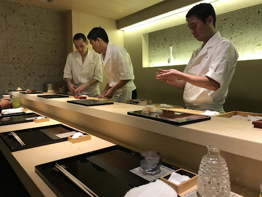 Read moreBest piece of fish I've ever had in my life. We got super lucky by going right as they opened their doors on a weekday at 11:30am. We took the elevator down (it's kind of hard to find if you don't read Japanese so look for a tiny little sign that says take the elevator down). Someone greeted us and one of the chefs who spoke great English came over and said he had reservations but could seat us before his 1pm reservation at the counter. So we were in! Every staff member was on top of everything. Super professional and attentive. Masuda-san didn't speak much English, but the other chef did so he helped tell us what was coming our way. We were hesitant to try whale with all the hubub about the way they are killed and whatnot, but decided to go for it since Japan considers it a delicacy. And it was fantastic. Every piece was just divine. I believe what I was told was Sea Parch, but I am not 100% certain, but whatever it was, it was the best fish I've ever had. It was lightly seared and just melted in my mouth. Truly remarkable. The rice was fantastic and complimented the fish well. My friend and I learned that we don't love sea urchin, but were happy to try anything. $250 for lunch seemed a bit steep. Maybe a dinner that makes sense, but for a pretty quick lunch, I'm not so sure. Worth it for the experience and trying some of the world's best sushi, but damn. Fun to talk to the chefs as we were the only ones there for an hour or so. Super kind. I think they laughed at us a few times, but we laughed back so it's just all...