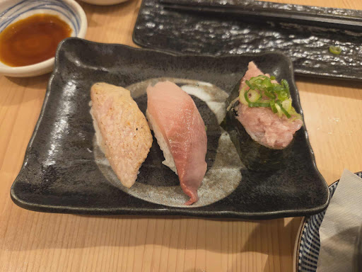 We returned a few nights later and the experience could not have been more different. This time we ordered a couple of yakitori skewers and a few nigiri. The kitchen was extra slow cooking the yakitori and we had to ask the server for our final skewer. The nigiri still had good fish but the rice was falling apart as soon as they were picked up. Additionally we noticed our bill total continuing to climb unexpectedly. We asked about it and it turned out the restaurant had taken the liberty of adding a random "house special" order to our bill that totaled an extra 600 yen.