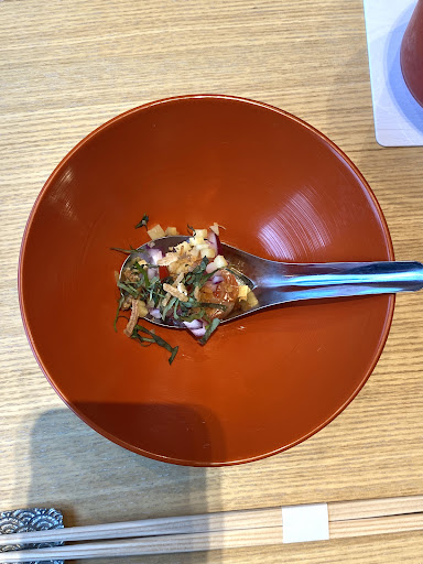 さらに「ウニ」…さっきのフェイク雲丹と違い、本物のウニが出て来た!普通の寿司屋になってしまうのか?と思ったら下には酢飯のリゾットようなものが入り、味付けはトムカーガイ(ココナッツミルクの甘酸っぱいスープ)。…見事に裏切ってくれる。