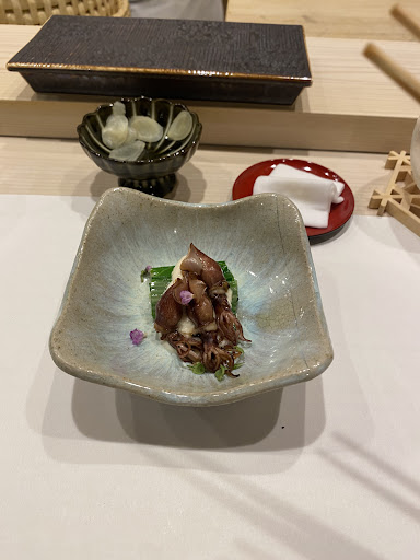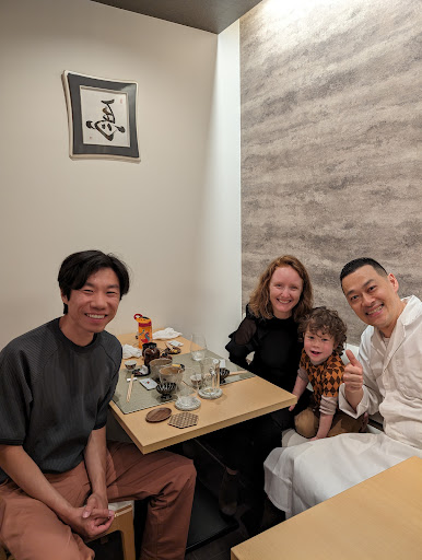 This place is the absolute best, it was absolutely incredible. We came here for our last night to try an authentic omakase dinner. First of all, the owners took a last minute reservation on the phone, and the restaurant was pleasantly almost empty, which means we got a pretty much private chef preparing and serving most courses personally. The ambience was so nice, quiet and intimate, with excellent service. Both the chef and the main maitre spoke good English (especially the chef) and they showed us pictures of each fish or vegetable in each dish. Each dish was artfully crafted to combine fish with an ensemble of unique flavors and styles. We are so happy we came here, we could not have chosen better from any perspective. We also had our 3 year old with us and they were super accommodating and offered a miso soup and egg omelette for him. The chef came to our table three times during the meal to talk to us and check in. Finally, even as the restaurant got busy, he personally came to see us out and waited until we left the stairs to bow and thank us one last time. I have honestly never felt so honored at any restaurant I have eaten in my whole life. I highly highly highly recommend this restaurant for the best sushi experience of your life!!! Thank you once more to chef Tetsu and all the personnel who created this climatic experience for us at the end of our Japan trip!
