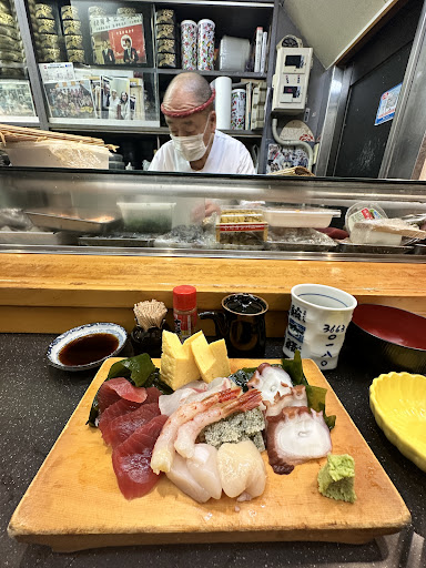 Went in for lunch, they only have one thing on the menu which is 1200 yen for a bowl of rice and various sushi + miso soup. I believe they have an upstairs space for additional seating but I'm uncertain of the amount of seating there is up there. There is maybe around 10 seats in front of the sushi chef downstairs. Best chance is shortly after noon after the first wave of locals begin leaving.