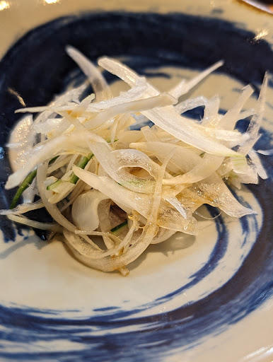 1品目のおつまみは新玉葱、とても甘く、旬のものを頂けるのは嬉しいばかりです。