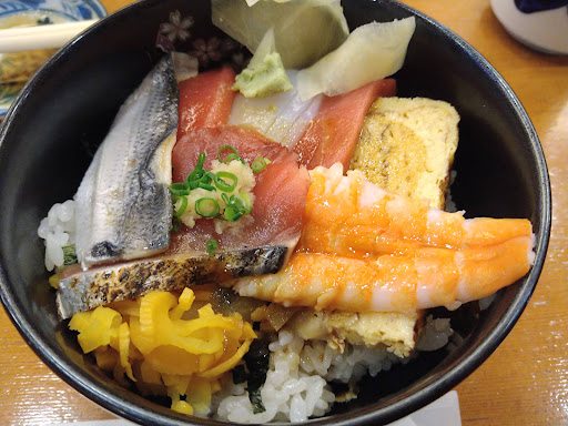 土曜日の13時過ぎにお安い看板が目に入り初めて訪れました。 ランチが握りと海鮮丼の2種類で800円とリーズナブルだしネタも新鮮で美味しかったです! 1.5人前にしても1,100円です。マグロのあら汁とオレンジもついていました。 右側にカウンターと左側にテーブル席があります。 駐車場も向い側にあり便利です。 この時はとても穏やかな年配のご夫婦で切り盛りされて...
