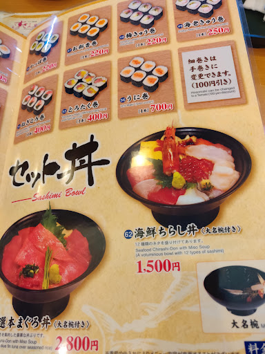 Read moreAwesome to sit at bar and watch your sushi chef prepare your sashimi or niguri roll. The unagi and scallops was awesome, but I was slightly disappointed with the tuna sashimi set because the otoro fatty tuna was stringy. I can always tell great from average sashimi when the stringy part melts in your mouth. We sat around 10:30am with a two minute wait. Price was very reasonable at 6200 yen for two of us. We had the sashimi set, salmon roll, nigiri (two salmon, two chef special broiled maguro, two scallop, horse mackeral, and unagi), They will try to push you to buy specialty drinks but house green tea was fine with us. All in all, a great day at the...