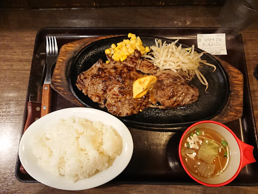 五反田にある「すてーき亭」についに足を踏み入れました。店内に入ると、活気あふれる雰囲気に圧倒されます。育ち盛りの学生さんや、体格の良い海外の方など、エネルギーに満ちたお客さんで賑わっていました。皆さん、思い思いにステーキにかぶりついている様子は、見ているだけで食欲をそそります。 今回は、基本のステーキに加えて、ソーセージと「おい肉」という追加オプションを注文してみました。とにかく肉を堪能したい!という強い欲求があったからです。しばらくして運ばれてきたプレートは、まさに肉の山!熱々の鉄板の上でジュージューと音を立てるステーキは、見た目からしてワイルドです。 さて、お味の方ですが、確かに最初のうちは少し硬さを感じました。しかし、食べ進めていくうちに、肉の旨味がじわじわと口の中に広がります。赤身肉らしい、噛みごたえのある食感と、ジュワッと溢れる肉汁がたまりません。別料金でグレードの高いお肉も用意されています。予算に合わせて選べるのは嬉しいポイントですね。それにしても安い。ビッグステーキはたぶん120g1300円くらいです。 追加したソーセージは、粗挽きでジューシー。ステーキとはまた違った味わいで、良いアクセントになります。そして、「おい肉」!これはまさに肉好きにはたまらないシステムです。文字通り、ステーキを食べ終わった後でも、さらに肉を追加できるのですから。今回はアイなんとか肉(名前を忘れました)を追加しましたが、これもまた食べ応え十分。心ゆくまで肉を堪能することができました。こちらは肉質が柔らかい。 すてーき亭の魅力は、なんと言ってもそのコストパフォーマンスの高さでしょう。ライスとスープがおかわり自由というのも、お腹いっぱい食べたい人には嬉しいサービスです。特に、身体づくりに励んでいる方や、日頃からタンパク質を意識して摂取している方にとっては、手頃な価格でしっかりと肉を食べられる貴重な存在だと思います。 ただ、一点だけ個人的な感想を述べると、付け合わせで選べるデミグラスソースは、私には少し濃厚すぎたように感じました。シンプルに醤油とペッパーでいただく方が、肉本来の味を引き立ててくれるかもしれません。次回は、醤油とペッパーで「追い込み」たいと思います。 そして、最後に「ステーキライス」を作りました。これは絶対に試してみるべき食べ方ですね!残ったステーキとライス、そして鉄板に残った肉汁やソースを絡めて食べるのは、想像しただけで食欲が湧いてきます。今回はお腹いっぱいだった方は。次回の訪問時には必ず試してみてください。店内を見渡すと、お一人で黙々とステーキを頬張る方、グループでワイワイと楽しむ方、様々な客層の方がいらっしゃいました。五反田という場所柄、仕事帰りのサラリーマンの方も多いかもしれませんね。カジュアルな雰囲気なので、気兼ねなく入れるのも魅力の一つでしょう。店員さんのテキパキとした対応も好印象でした。 すてーき亭は、高級レストランのような洗練された味わいを求める方には向かないかもしれませんが、「とにかく安く、お腹いっぱい肉を食べたい!」というニーズには間違いなく応えてくれるお店です。五反田でガッツリと食事をしたい時には、また迷わず足を運びたいと思います。次はぜひ、柔らかいという上のクラスのステーキも試してみたいです。そして、...