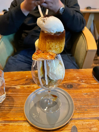 Read moreThis was a great find, but note that it is on 6F. Google had it tagged with "women" and we seemed to be the only men there, but it was a great low key cafe with great savory dishes, desserts, and drinks (and handy baskets to place your purse or other things if you need to). There was a one drink minimum but that was no problem, we had a matcha latte which included a dollop of crème fraîche and a homemade ginger ale with lots of ginger. Their version of a Cesar salad was delicious, as was their Ajillo Shrimp, but the crowning glory (and most expensive item on the bill) was their signature Suzu pudding parfait with espresso bean powder, whipped cream, flan pudding, brulee banana, almond mille feuille, imo sweet potato, and vanilla ice cream. Total was 4800¥ which comes to about $35, not cheap but very reasonable and they don't rush you out (we took our time but some ladies that came before us still...