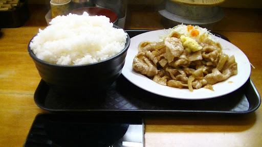 生姜焼き(341g)+ご飯特盛り2杯(約1.5kg)+ご飯普通盛り(300g位)を1杯、合計約2.1kgを完食しました。