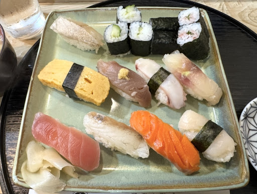 待つこと10分程でお寿司の提供です。 彩り豊か、結構なボリュームです。ネタとシャリのバランスが素晴らしい。仕込みの丁寧さが伝わってきます。また、ネタの内容がよく吟味されており、1,815円で美味しく提供する企業努力が伝わってきます。味噌汁も丁寧に作られています。 あっと言う間に、食べ終わってしまいました。