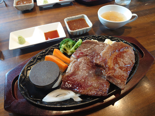 Read more辺鄙な場所にありいつも横目に通り過ぎてましたが、お盆休み中でどこも満員だったため飛び込みました。 一緒に行った後輩の彼は某いきなりなステーキ屋では700gを食べるので、高級な山形牛A5ランクの店でどんな暴れ食いをされるか内心ヒヤヒヤしておりました。 メニューでサーロインステーキのg数が250が最大になっていたため、自分は250を注文、店員さんにグラムアップできますか?と聞くと出来るとのことで彼は400gを注文、若干厨房がザワザワしてる気がして、奥からお姉さんが出てこられて400は1枚の鉄板では乗りません鉄板2枚での提供でよろしいでしょうか!とのこと。 いざ品物が出てくるとさすがの山形牛!牛脂が甘く、つけダレもとても美味しく食べさせて頂きました。 でも700のステーキをぺろりと食べる彼が、250ほど食べたところで手が止まっているのを見てどうした?と聞くと油がマイク・タイソンのようです。と言っていました。そうですね、高級なステーキは大量に食べると重くボディーに効くということをやっと知れたのでしょう… 帰り際店員のお母さんに大丈夫でしたか?と聞かれて今までで400gのサーロインステーキ食べた人は始めてです。と言われました。 色々と学びがある食事となりました。 とっても美味しかっ...